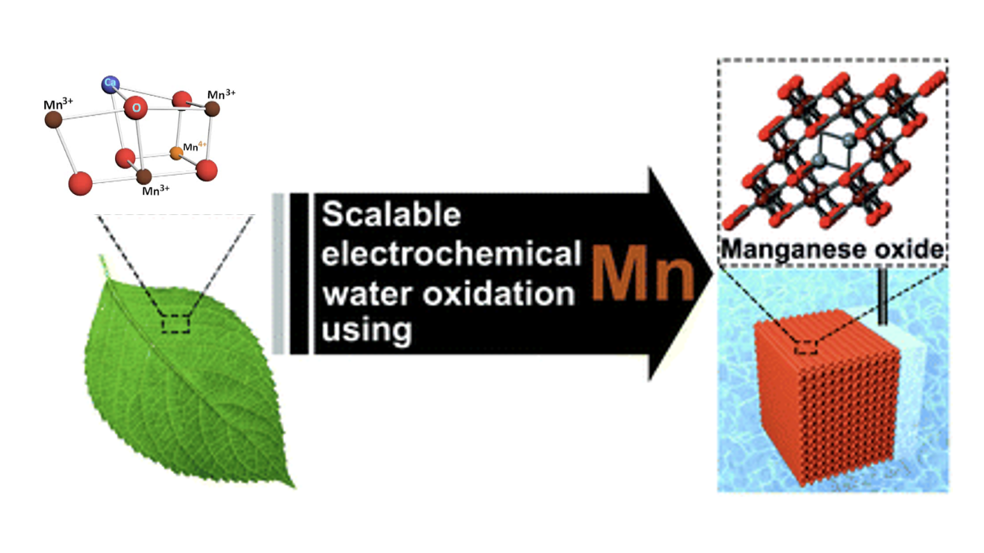 By mimicking the Mn–Ca cluster in natural photosystem II, we developed state-of-the-art Mn nanoparticle catalysts for water oxidation. This technology has led to the successful industrialization of chlorine-evolving oxidation catalysts with commercial performance.